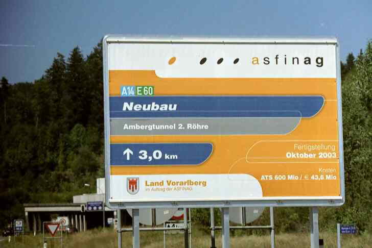 Das Land Vorarlberg baut auf 3 km einen zweiten Autobahntunnel. Mit 28.425,-- DM/m zweispurigem Tunnel sind die Kosten sehr niedrig.