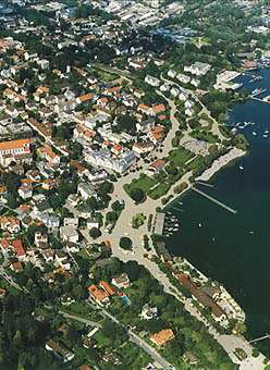 Das Luftbild ein Entwurf zur Nutzung der Seepromenade von oben.