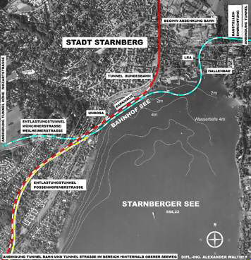 Ich habe ein Konzept ausgearbeitet, bei welchem all dies ohne Beeinträchtigung durch Baustellenverkehr in Starnberg möglich wäre. Zudem könnten erhebliche Kosten eingespart werden, indem man den Tunnel