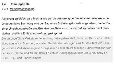 lt.Gutachten von Professor Dr. Kurzak eine Entlastung in Starnberg von nur 900-1800 Kfz/24 Std.